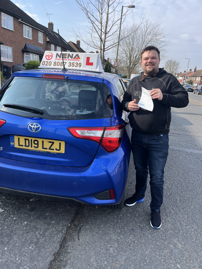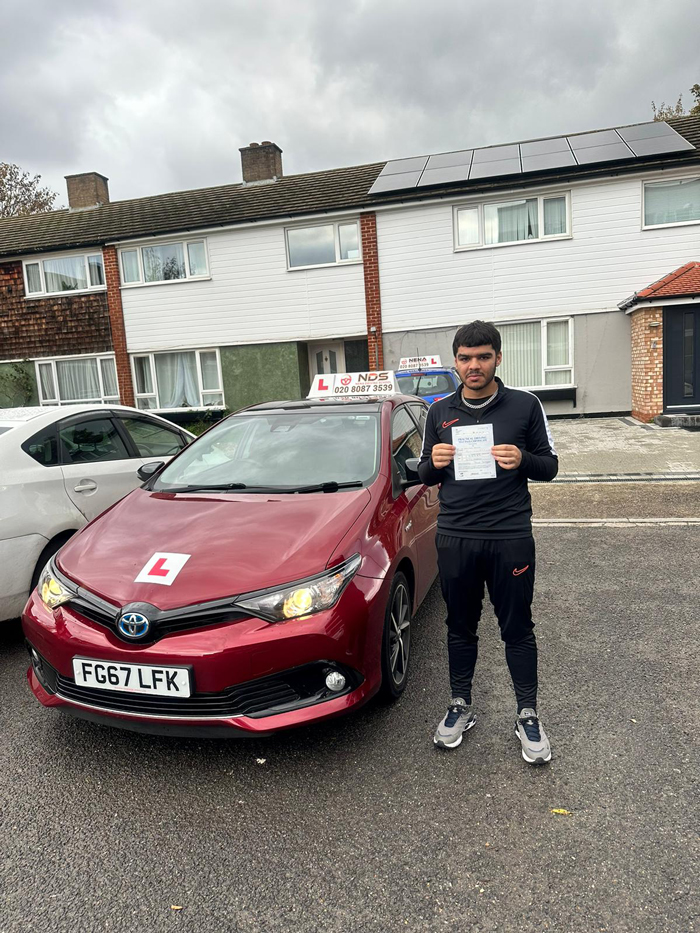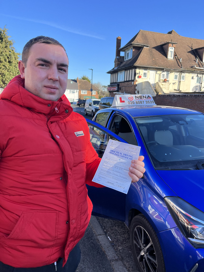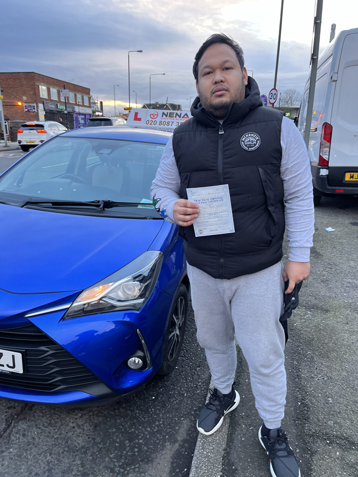 Edmond Bala from Fullam passed with few miners in 1st attemp in Morden Test centre with our Shamim driving instructure
