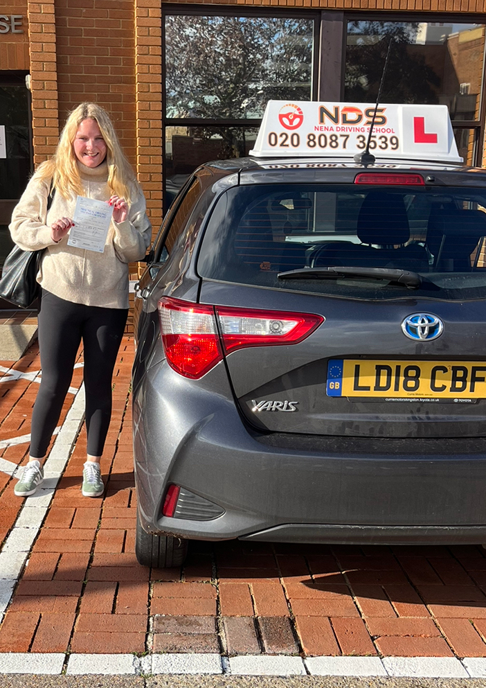 Today, our student Natasha Sturrock from Surbiton passed her driving test with Shamim from the Tolworth T/C with 1 minor on the first attempt on Manual. We Congratulate her on her success. HAPPY DRIVING!!!!!